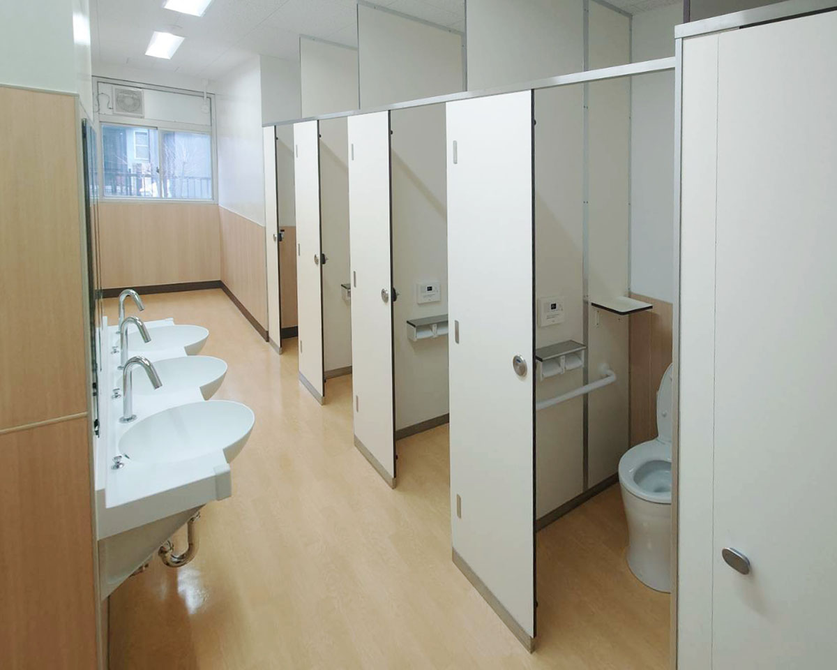 世田谷区立山崎小学校 様|トイレブース/丁番吊ソリッドブース
