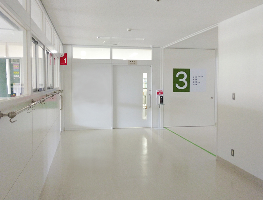 校舎内は白を基調に明るく清々しいイメージで、自然光も存分に取り込める広い窓を多様。教室や廊下の掲示板パネルは、カラーの選べるクロスタイプを使用。玄関ホールは、ガラスパーティションを使用し開放的で広い空間となっております。