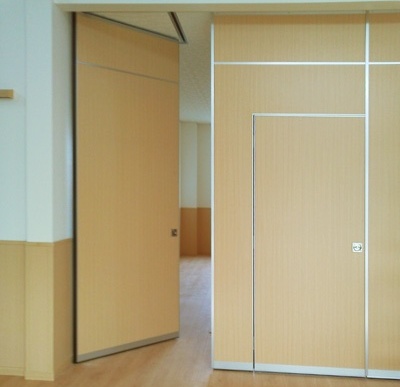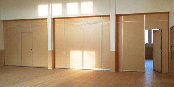 こちらの保育園では玄関から入ってすぐの所に、大きな移動間仕切を設置しました。