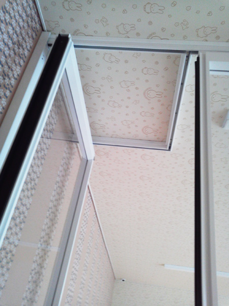天井のレールは振れ止めとしての役割だけで、パネルを吊っていません。