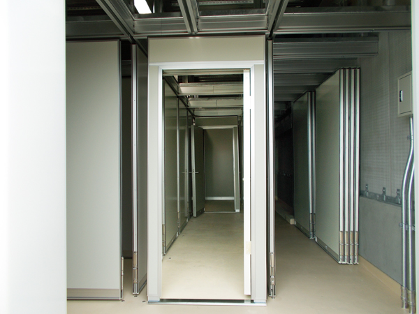 ■解決案として、迷路内のパネルを固定するための柱が不要で「パネルを自由自在に移動できる」スライディングウォールをご提案しました。操作の簡略化、時間の省力化が可能となる「探索訓練用迷路」の施工となりました。
