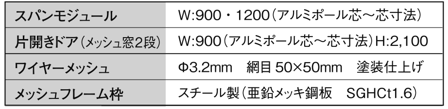 Φ3.2ミリのタフなワイヤーメッシュで構成されたパネル構造になります。