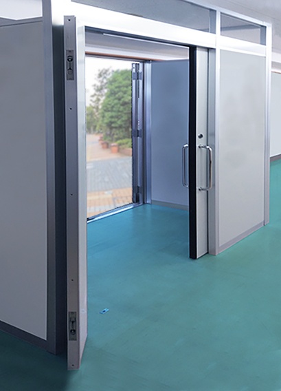 通常使うハンガードアの片側に開き戸の子ドアを組合わせる事で、使用時の用途に合わせた出入り口スペースの変更が可能に。デッドスペースを最小限におさえ、大きな荷物の出し入れにも無理なく対応できます。