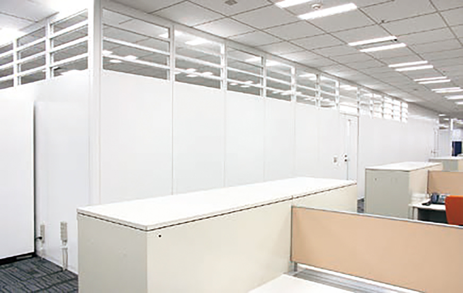 パネルをはじめ主な部材は、スチールや石膏ボード、アルミなどの不燃材で構成しています。パネルは不燃材料の個別認定を受けていますので、内装制限の適用を受ける場所でもご使用いただけます。