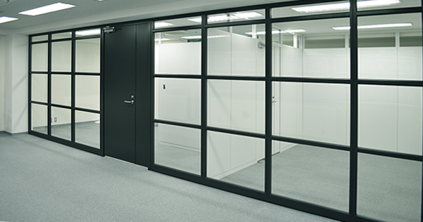 ガラスならではの採光性と開放感を持ちながら、自由なスタイルと重厚な存在感を主張するブロックタイプのパーティション。