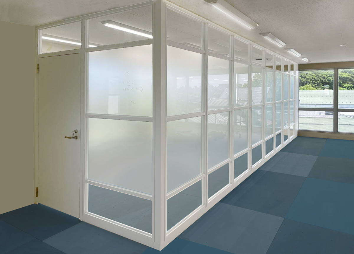 電源スイッチのON、OFFで瞬時に透明・不透明を切替えることができるガラスパーティションです。視線をコントロールできるので、様々な空間にご利用いただけます。