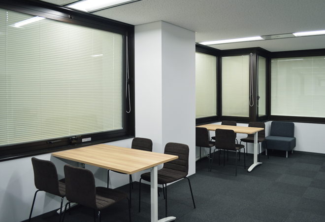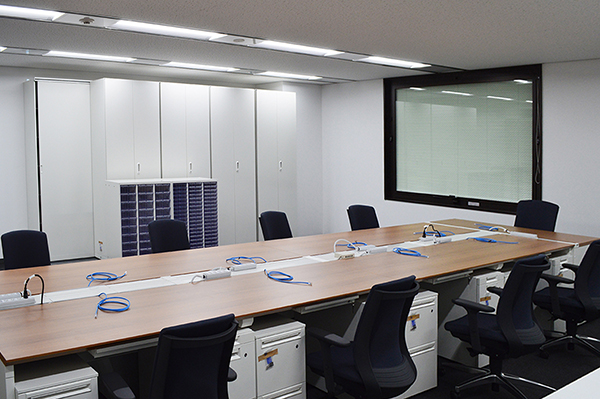 フリースペースの配置により、ミーティングの他にも簡単な打合せ、個々の集中作業等、時間にもとらわれずにアイデアを出し合える場として活用されている事例です。