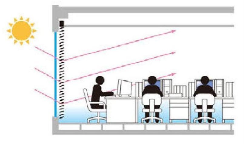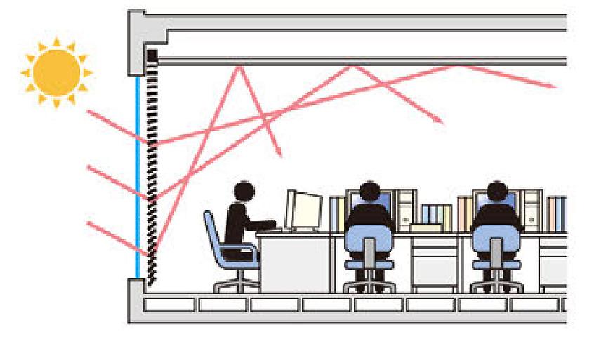 グラデーションブラインドは、自然光を効率よく取り入れ、照明の消費エネルギーを削減できます。