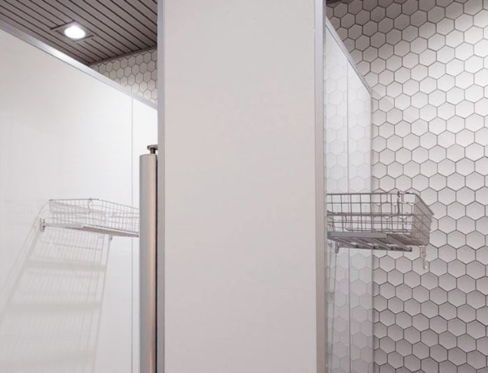 水に強く、シャワーブースや屋外のトイレブースに最適。