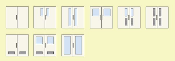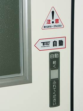 ●自動ドア(オプション)にはタッチ式、フット式、センサー式などのタイプがあります。病室、手術室などの出入り口、その他躯体開口など用途に合わせてお選びいただけます。