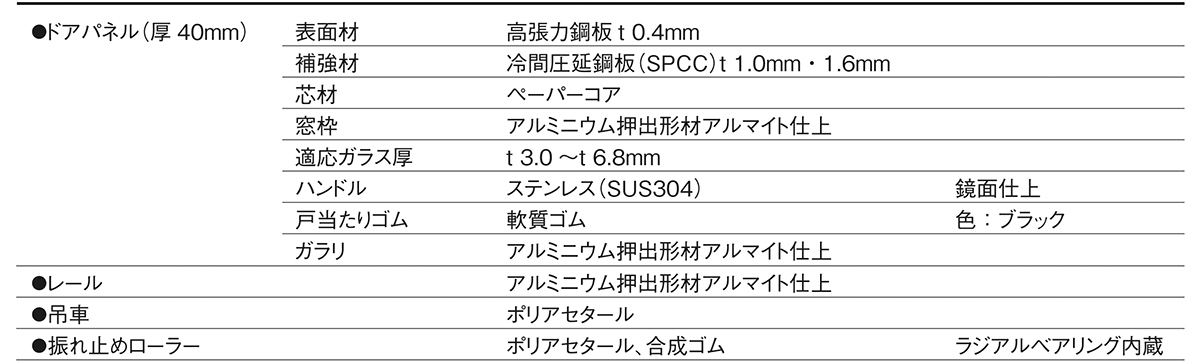 ●ドアパネル標準仕様(厚さ40mm)