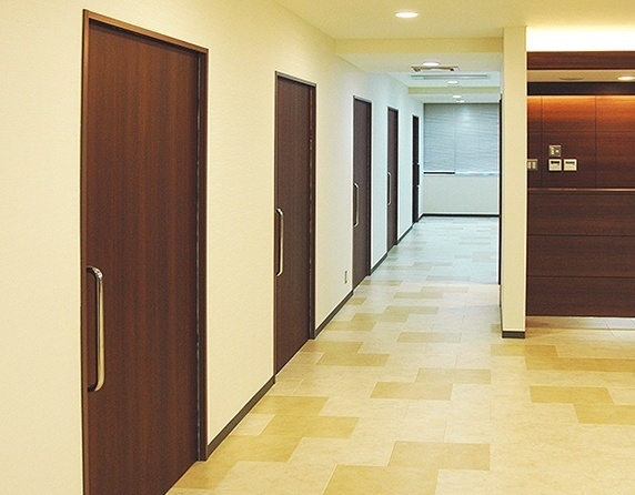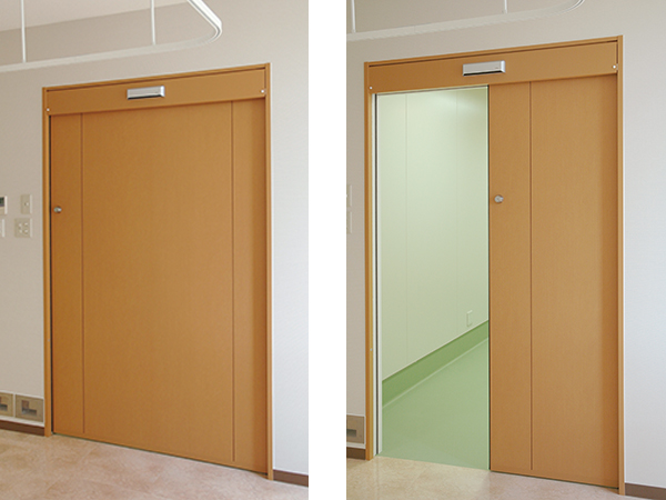 床面にレールがないので、医療施設や福祉施設はもちろん、オフィスや公共施設などデザインを活かした無駄のない空間をご提案いたします。溶接をしないビス固定なので、火気の心配がありません。