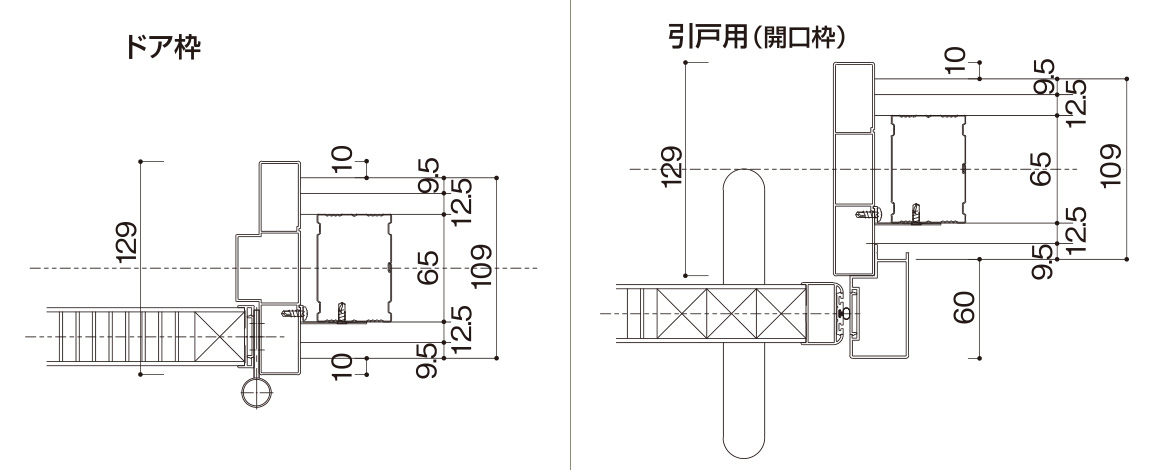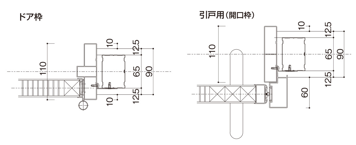 開口枠は専用金型で成形されたアルミ形材による仕様なので、開口寸法に合わせて一から製作するスチール枠と比較して、製作日数でお待たせすることはありません。