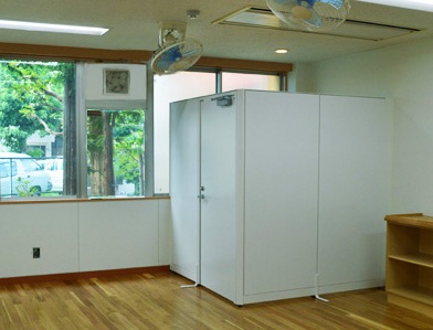 乳幼児室の一角に授乳室を設置(ローパーティションスチールタイプ C&L)