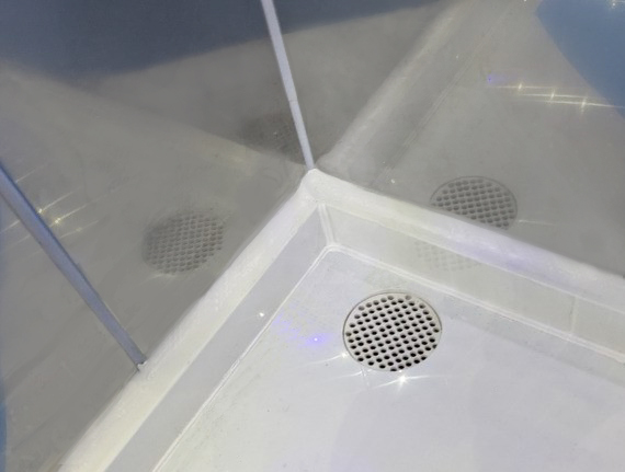 防水床(硬質塩ビ樹脂押出板10mm厚)角部には排水用目皿