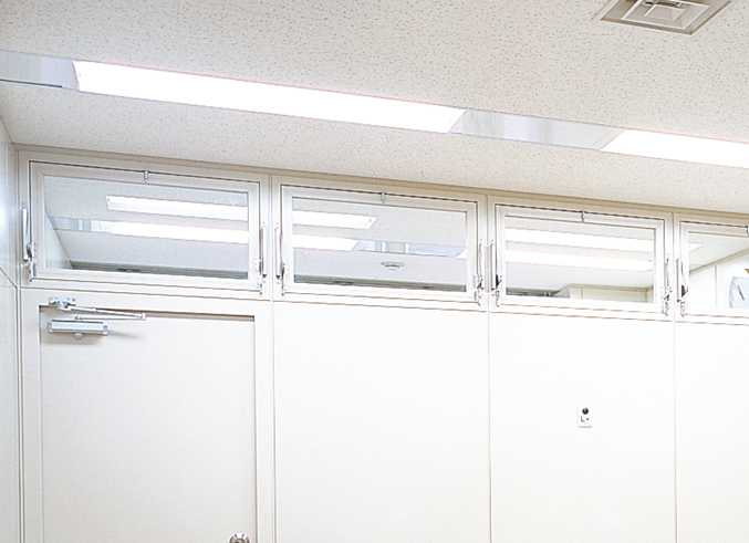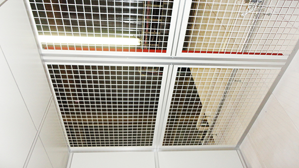 大型倉庫内に間仕切りで事務所スペースを設置する際、天井を金網仕様にすれば照明を追加設置しなくても、「明るさを確保」プラス「侵入防止」の防犯対策にもなります。