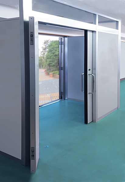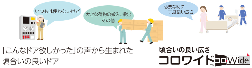 普段使いはハンガードア。必要な時だけ子ドアも使用。デッドスペースも無く、グンとワイドな開口に!あらゆる施設で活躍します。
