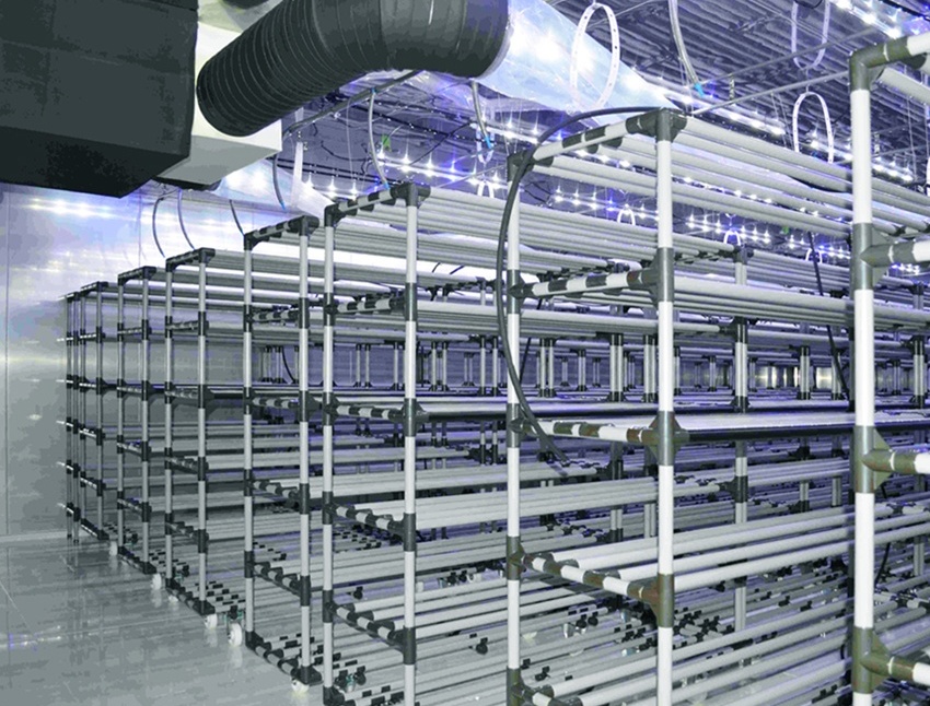 栽培室内では給水装置を上部に設置し、定期的に噴射するため部屋内側の壁及び天井パネルの表面材は水に強いステンレスを使用し、気密性・常温性の高い断熱パネルブースを提案させて頂きました。